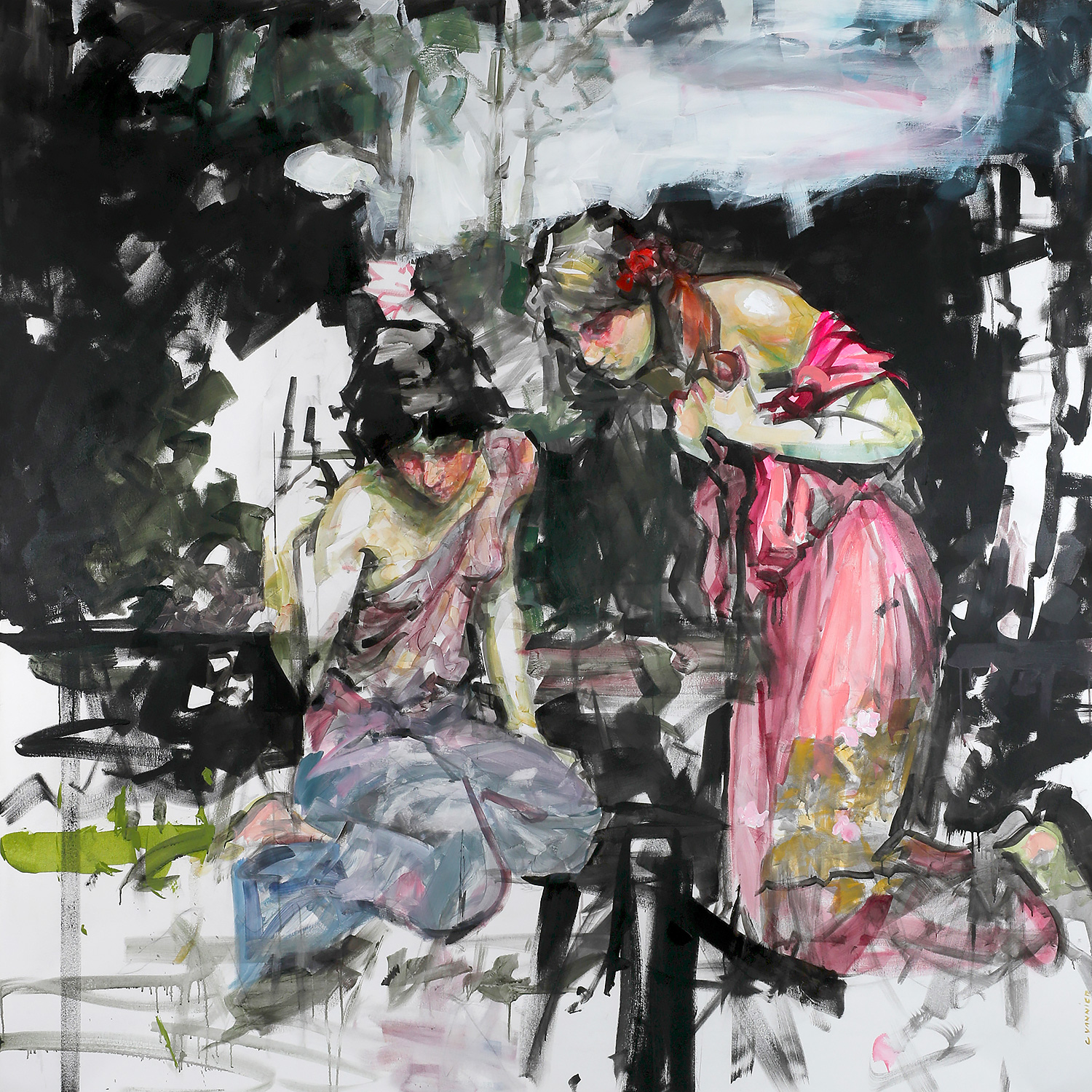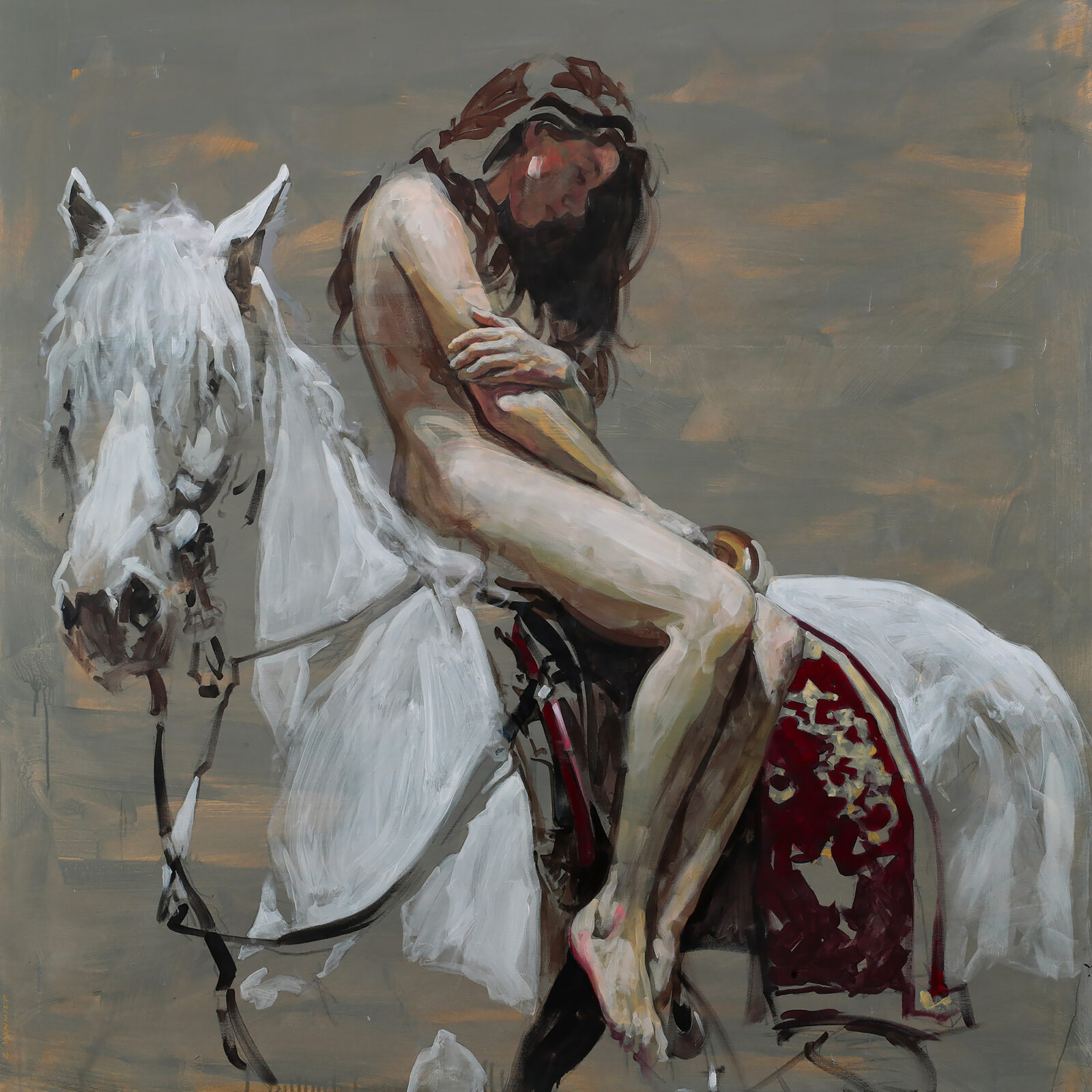 Des réinterprétations, des oeuvres qui dialoguent avec la mythologie, l’histoire et certaines figures de la peinture. Des archétypes anciens déplacés dans une sensibilité contemporaine.
